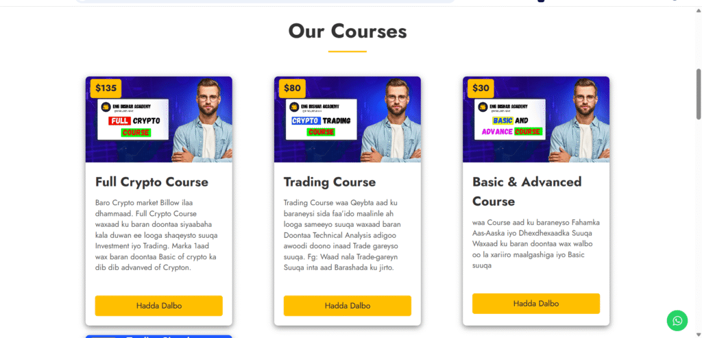 EngBishaar.com is a modern e-learning platform focused on cryptocurrency education. It’s designed to offer learners a clear, engaging, and professional space to explore crypto trading, blockchain technology, and digital finance.